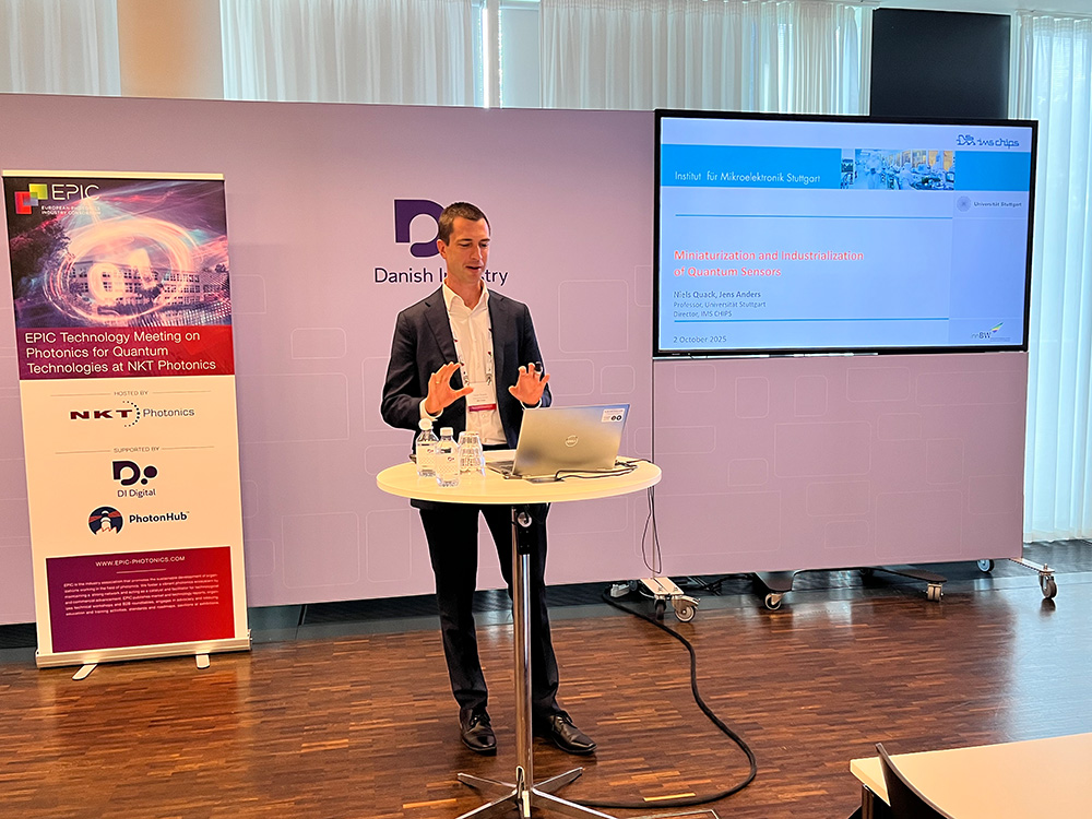 In addition, on October 2, 2025, our director Prof. Dr. Niels Quack joined industry leaders as a speaker at the EPIC – European Photonics Industry Consortium meeting on Photonics for Quantum Applications. Hosted by NKT Photonics, this exclusive event brought together technology providers, end-users, and investors to explore the transformative potential of quantum photonics – with a strong focus on quantum communications.